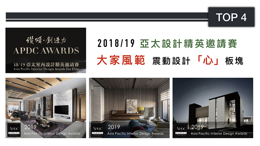 隸屬於全球跨界設計聯盟ico-D及IFI的成員組織「亞太設計中心(APDC)」,舉辦國際級賽事「亞太設計精英邀請賽(APDC AWARDS)」,至今邁入第十屆!而魏總監將其對於建築及室內空間的豐厚經驗,轉化為三件住宅力作——《文守閣》、《漫.生活》及《家的想像》,其挾帶融建築與環境為一體的宏觀視野,與駕馭大氣格局的能力,終以超強氣勢,搶登邀請賽「推薦優秀設計師」榜單!