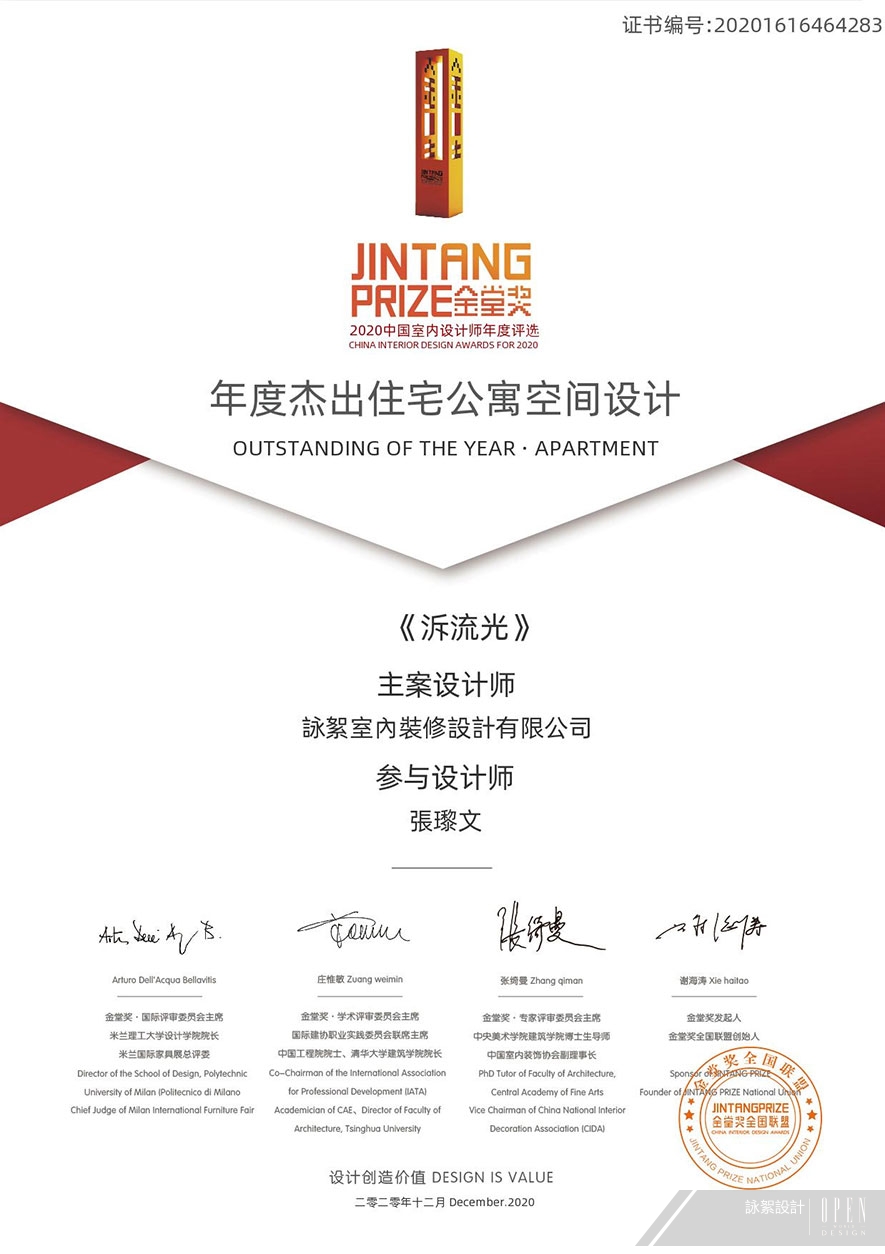 金堂獎2010年正式起航於北京,致力推動「設計創造價值」的主題,歷經十年發展,已全面覆蓋中國大陸五百萬設計師人群,成為最具影響力的室內設計盛事之一。而今年參賽的4240件作品,經嚴格評選後,500件作品脫穎而出,成為金堂獎2020年度傑出設計,僅11%的獲獎率,足見獲選者的優秀實力!