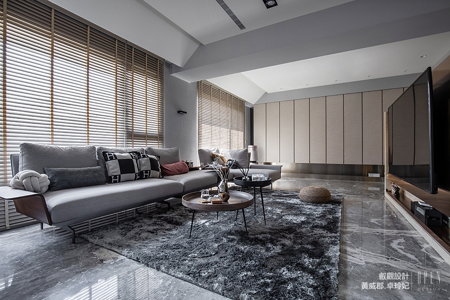 讓整體視感不會過於單調,也能凸顯電視主牆及起居區域的重點。
