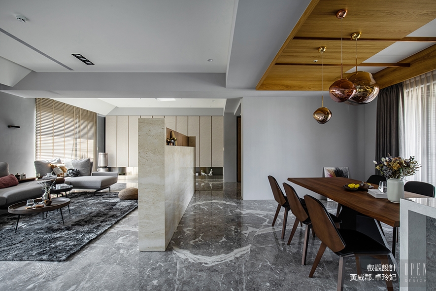 另一規劃重點,則落在地坪上,業主十分喜歡大理石材,