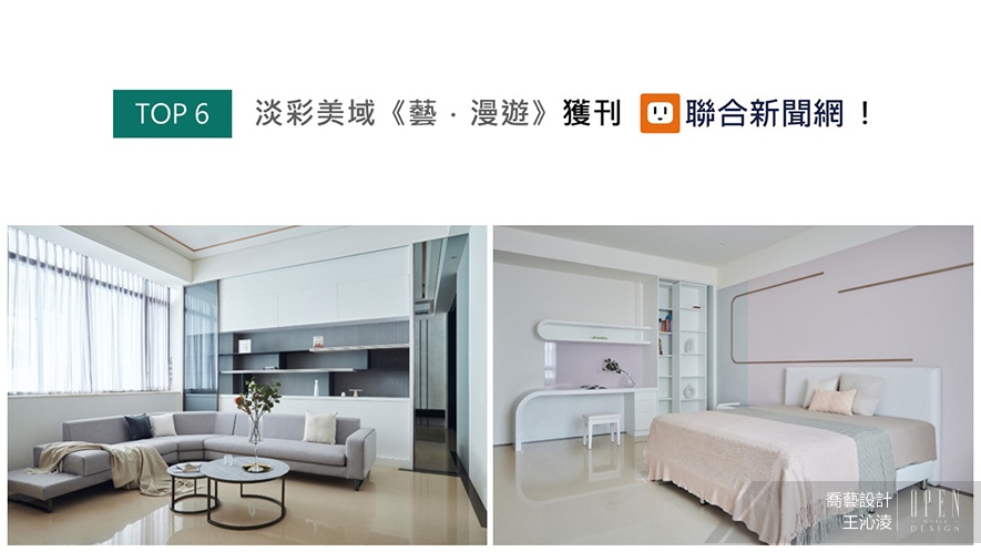 王總監屏除繁複裝飾,於家宅《藝‧漫遊》採用色塊、紋理單純的硬裝圍塑簡約風貌,並於灰階色調中妝點輕柔的莫蘭迪色系,打造時尚不失朝氣的靈動光景,獲得UDN聯合新聞網上刊推薦!