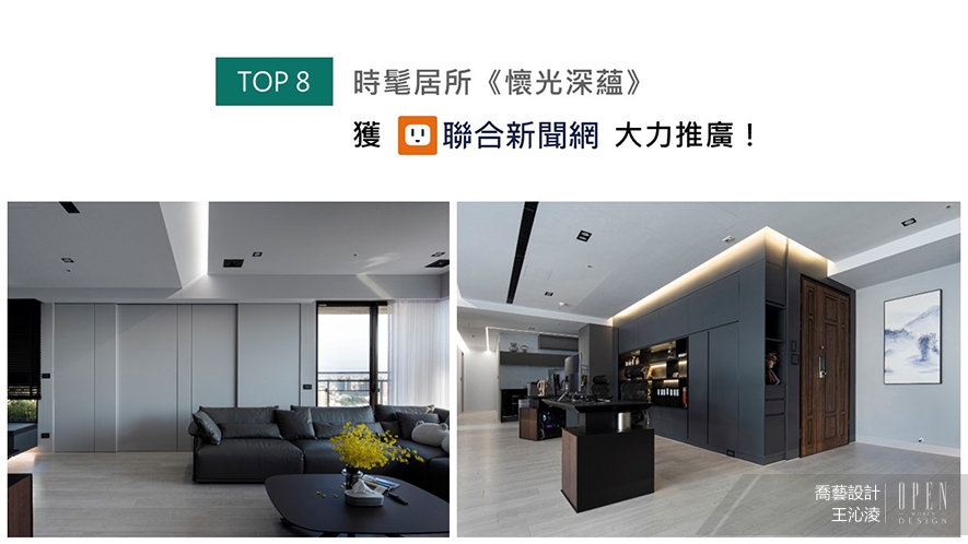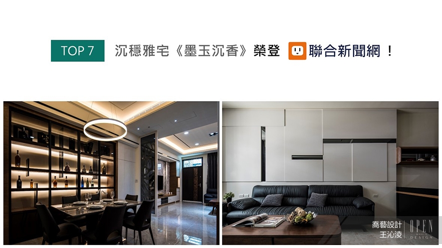 王沁淩總監於作品《墨玉沉香》的公領域選用調性穩重的黑色軟裝,對比鮮明的純白立面、天壁,流露簡約時髦感,而私領域則依循家人各自喜好揮灑繽紛色彩,富有居者特色的傑出作品登上UDN聯合新聞網版面!
