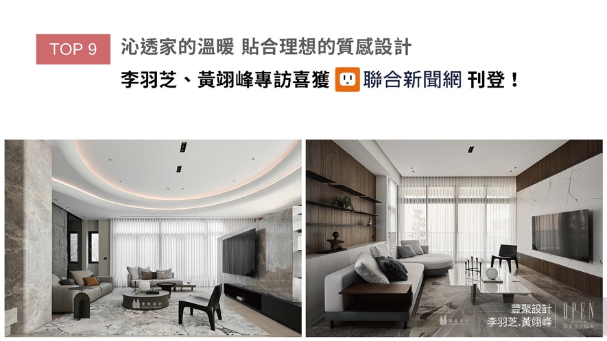 李羽芝、黃翊峰設計總監納入業主以用餐區為宅邸中心的生活習慣,於作品《Gallery 藝境》整理格局,打造寬敞舒適的餐廚區域,便於人們在此齊聚交流、加深情誼,另遷移樓梯至公區中央,搭配清透俐落配件,打造獨特視覺焦點,富有居者特色的傑出作品登上UDN聯合新聞網版面!