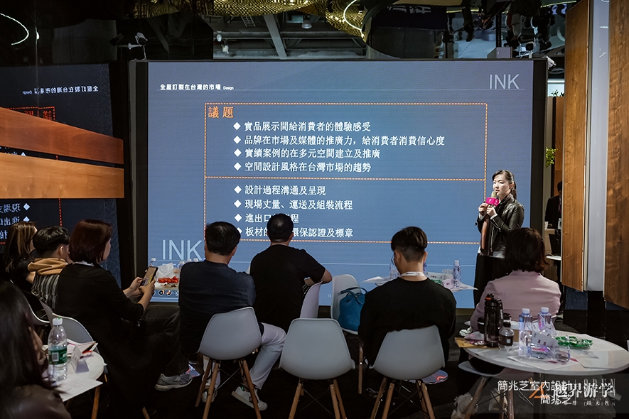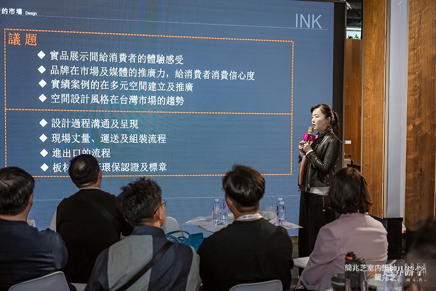 簡總監將焦點轉向「全屋訂製在台灣市場的發展」,她透過實際案例,分析台灣本土與上海供應商在製作工藝上的特色,並就實品展示間的體驗感受、品牌推廣力度等關鍵議題深入探討。值得注意的是,從設計溝通到現場安裝的完整流程剖析,再到板材環保認證等專業細節的闡述,為與會者提供全方位的市場洞察,展現對全屋訂製產業在台灣發展的精闢見解。