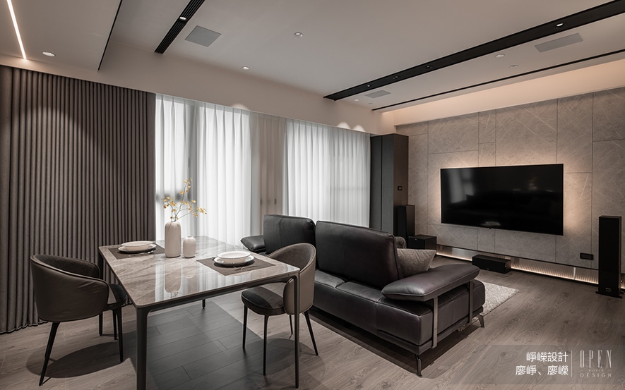 舉例而言,一名常駐美國的工程師業主委託崢嶸團隊裝修兩房物件,五年內皆會頻繁往返台美,十年後需考量成家及接母親同住的可能性。「我們透過大數據預測他在不同階段的空間使用情形,規劃出一個可隨需求變動的雙套房。」兩人說明,透過開放式公區可增加生活彈性,移動式家具則方便因應未來採光需求,「每個細節都根植於使用者真實生活,而非憑空想像。」