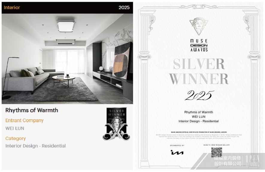 【緯綸設計】2025 MUSE Design Awards 優雅灰調家居攬回耀眼銀光!