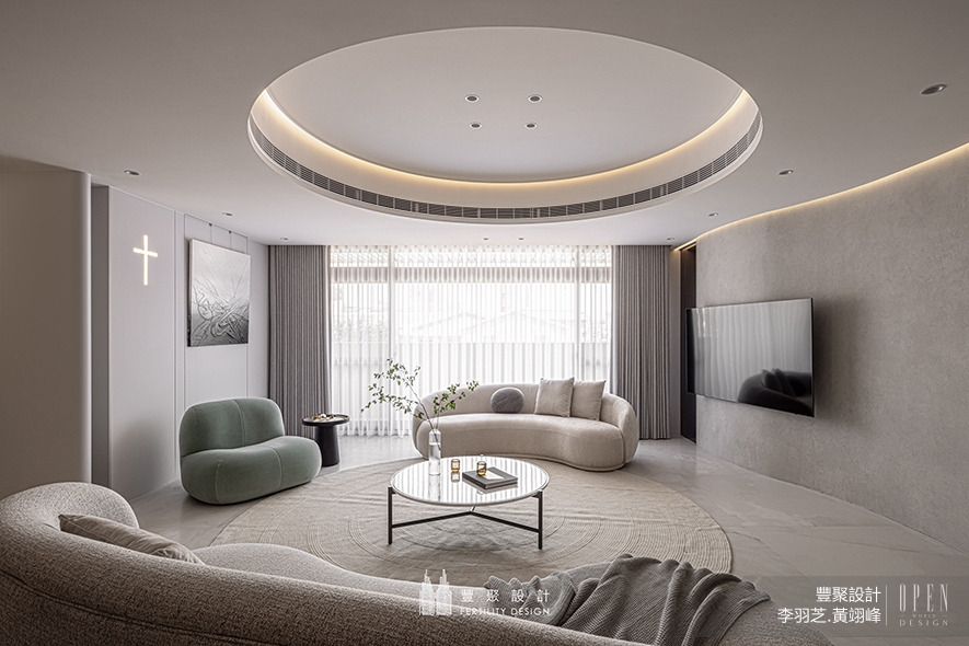 客廳&午茶區——流弧曲面開展綿延觀感 圓柔景緻靜述家族美滿