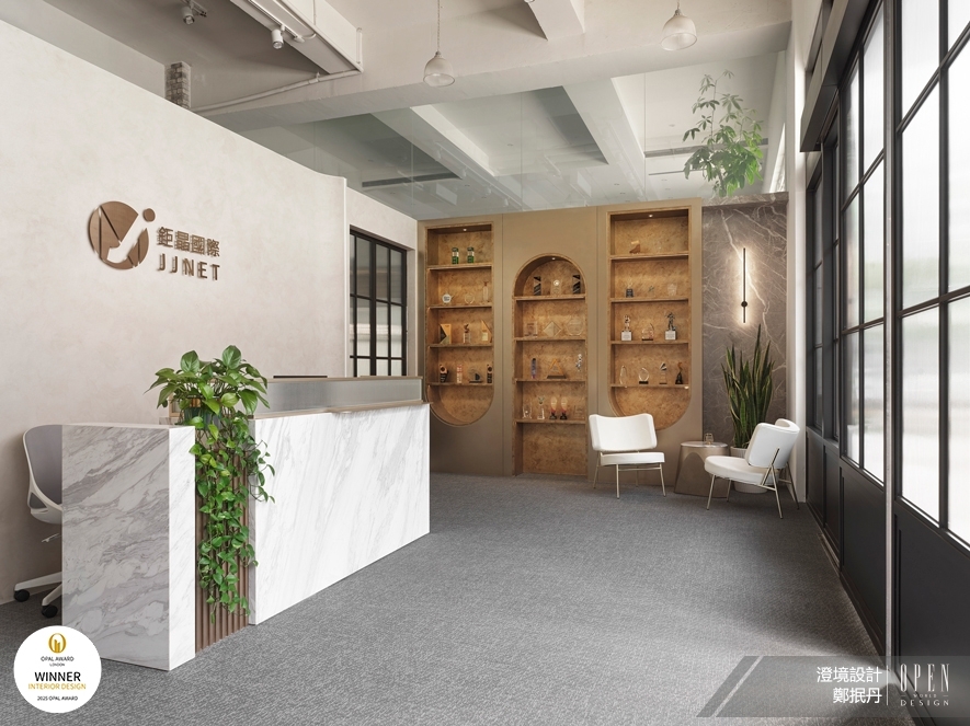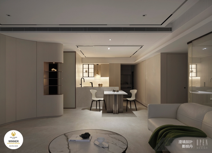 OUTSTANDING PROPERTY AWARD LONDON,OPAL(英國倫敦傑出地產大獎)由全球知名企業集團Farmani Group組織,並以招攬全球最佳建築師、室內設計師與房地產開發商為目標,在創造異業菁英聯合平臺的同時,找尋各地最富創造力、革新感、社會影響力與永續性的設計方案。本屆賽事中,澄境設計 設計總監 鄭抿丹 帶來家宅《弧光柔藝》與商業空間《淨光敘簡》雙作參賽,前者透過寬縫片簾捕捉自然光影,使其在水泥灰地坪上隨時序流轉,整體米色基調搭配簡約線板勾勒出溫暖舒心的氛圍;後者則以大地色藝術漆與柔和弧形背牆,化解冷硬石材的距離感,並運用靈活玻璃隔間兼顧開放性與隱私需求。兩案皆深刻體現大賽所倡導的「創造力」核心理念,於國際設計舞臺上展現精湛實力,雙雙獲得「Winner」佳績!