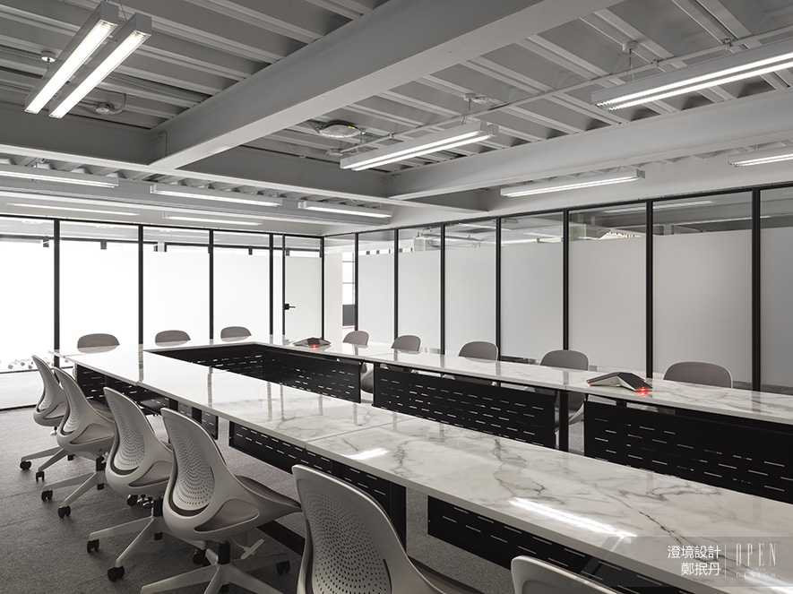 U型會議桌之間優雅構築開闊的互動空間,打破傳統會議室的拘謹格局,為演講者提供自由走動的舞臺,讓思維在流動中碰撞出創新火花;可靈活開合的玻璃隔間賦予空間彈性機能,平時維持通透明亮的視覺延伸,一定程度保持整體辦公區的連結感,需要時則完全敞開,瞬間與外部融為一體,化身多功能活動場地,滿足團隊培訓、大型聚會等多元需求。於此,創意無限迸發,溝通暢通無阻,每一想法都能得到充分表達與尊重。