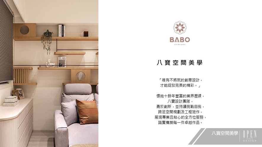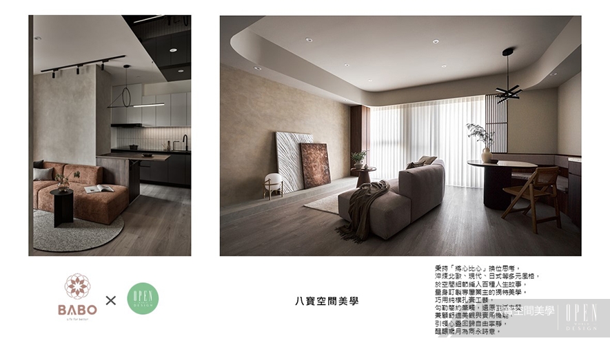 「室內設計界中,能做的空間種類永遠算不完,所以能勇於嘗試新的項目,是非常重要的一件事。」八寶空間美學團隊 持續擴增多元面向的客群,進而令品牌被更多不同領域的業主看見,不僅促進公司內部人員接觸新知識的機會,亦以「共好」的態度,積極參與利於企業幸福度提升、社會永續發展的活動;今後,他們也將秉持友善熱情的正向心態,創造出豐富細膩的動人空間,實現業主想望!
