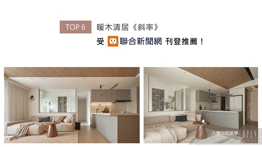 八寶空間美學期許給予家庭開闊暖心的活動空間,屏除舊有隔間,打造視覺連通的開放式公領域,並巧妙運用高低錯落的斜面天壁造型,將原始橫樑結構轉化為視覺亮點,層次豐富、動靜皆宜的宜人居所《斜率》,獲聯合新聞網刊載、大力推薦!