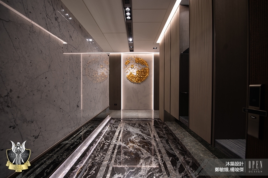 French Design Awards由歷史悠久的國際獎項協會International Awards Associates(IAA)主辦,旨在支持室內、建築、產品、包裝、時尚和景觀設計領域中,勇於創新、突破界限的非凡設計師,並透過表彰融匯創造力和美學功能、可持續性的雋永作品,鼓勵所有創作者為設計領域注入嶄新生命。沐築設計 設計總監 鄭敏娥、楊竣傑 於三代同堂度假宅《雲栖海映》中,以一樓玄關、二樓梯廳為中軸線,對稱劃分公私領域,清楚區隔主客動線,同時藉由開放式公區及全套房配置,回應屋主招待親友的社交需求;其中一樓多功能次臥搭載掀床、臥榻與隱藏式滑桌,既可供多人通鋪留宿,亦能作為窗畔品茗觀景的起居角落。美學鋪陳層面,玄關處金色蝴蝶端景隱喻家族凝聚和擴展,搭配滑門飛鳥芒草、床頭花卉浮雕與魚群洄游等自然語彙,引領戶外綠意悄然滲入屋內;長遠考量上,設計師揀選耐候金屬、低甲醛綠建材及無障礙地坪,結合一、二樓雙主臥規劃,妥善構築屋主退休後安全無毒、行動無礙的宜居場景。細膩呼應使用者情感與實用所需的雋永之作,高度契合賽事對「創意、功能性與長遠影響」的評選要求,獲得本屆French Design Awards「金獎」肯定,使品牌魅力綻放世界光彩!