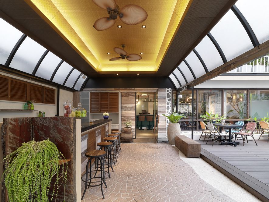 首先簡單介紹這次案子的背景,原本的物件是屬於兩層樓式的透天厝,作為幼稚園使用,特色是一樓前區有個不算小的庭園空間。後來由業主接手後,改為餐廳經營,而一二樓分別是不同性質的餐飲種類。也因為餐飲模式的差異,所以在設計上得做出區隔化,也是這次的挑戰。
