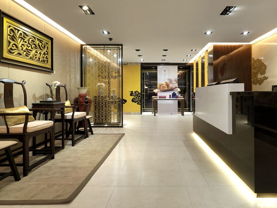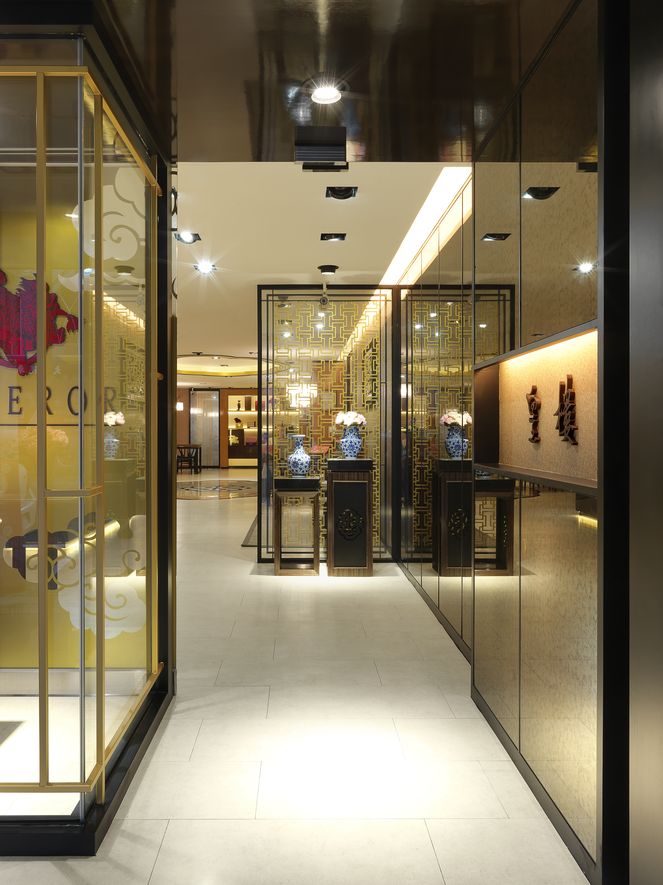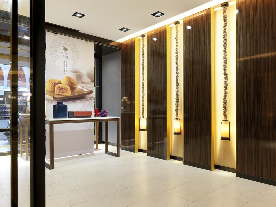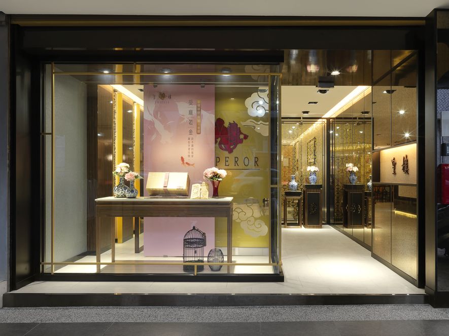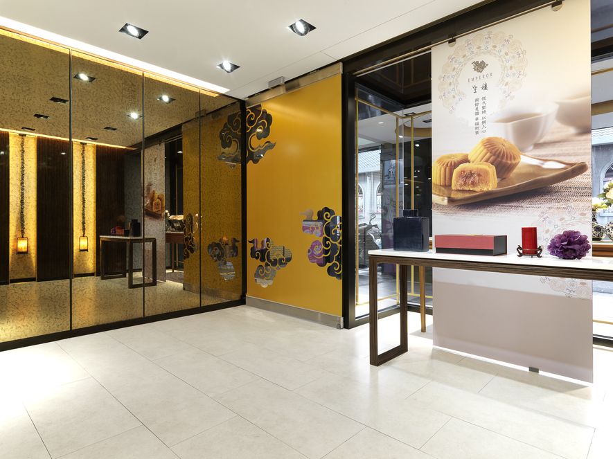 「皇樓漢式喜餅」品牌形象一直是強調傳統禮儀的精緻化和現代化。本次的店型改裝,我們除了延續此品牌精神外,並再加入貴族氣息及時尚元素,讓整體空間氣氛更能精準烘托不斷進化的產品和服務。