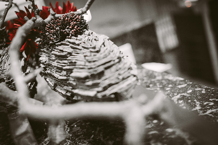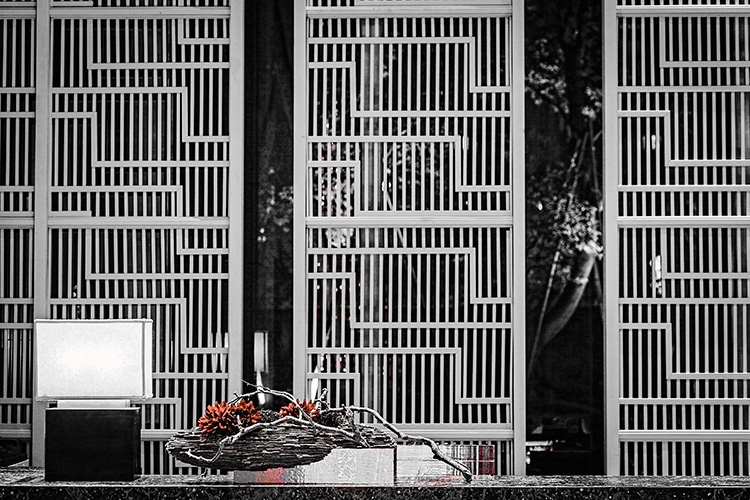 山端的那一首詩歌唱著,朱紅色的美人傾躺在層疊的天山雲裡,木樹岩層堅毅而沈穩地鞏著她,靜靜等待下一波飄來的雲煙雲雨。