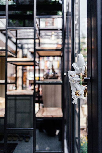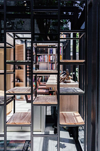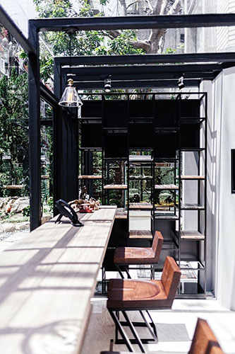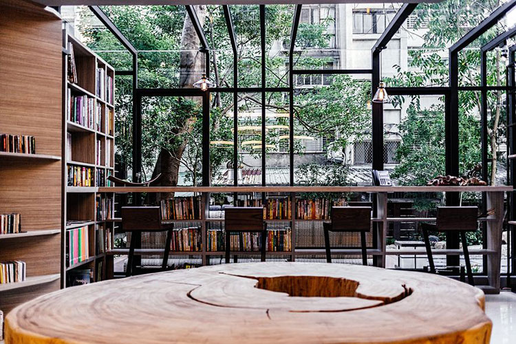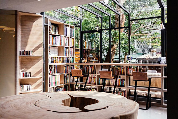 窗邊的高腳座位區,結合閱讀、工作,被綠意包圍,