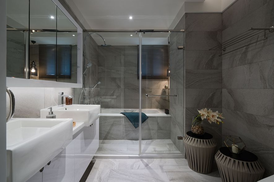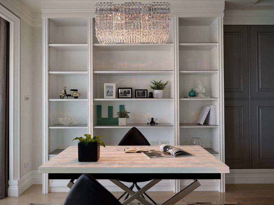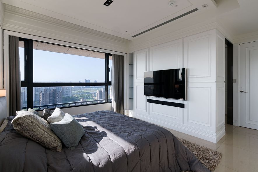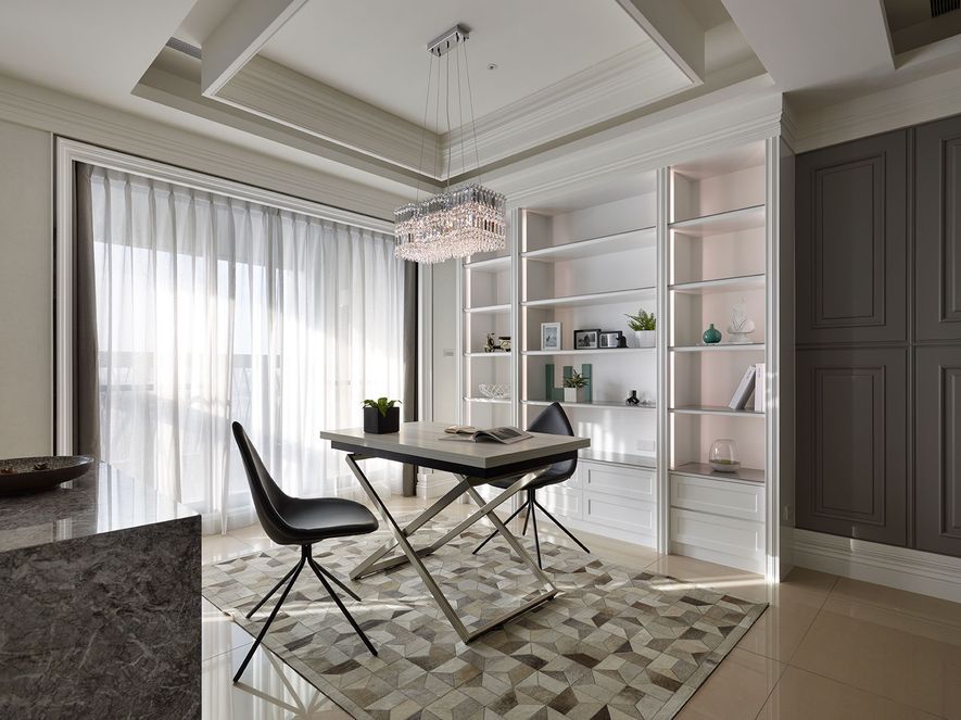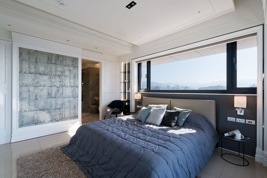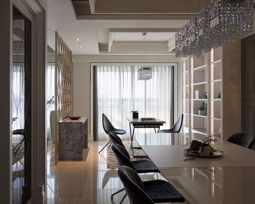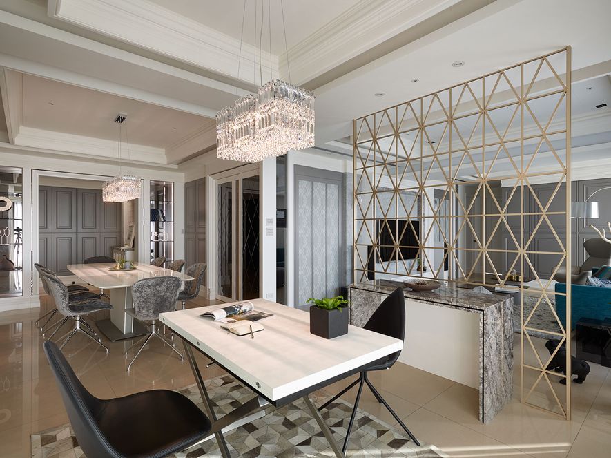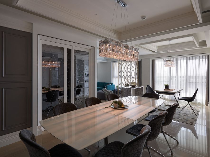 設計理念/ 屋主在台北另有其他住所,此屋為度假享受的空間。以灰白色為基底,並利用對稱性線版設計,在古典風格的基礎上增添了時尚的對稱美,打造優雅的度假居所。
