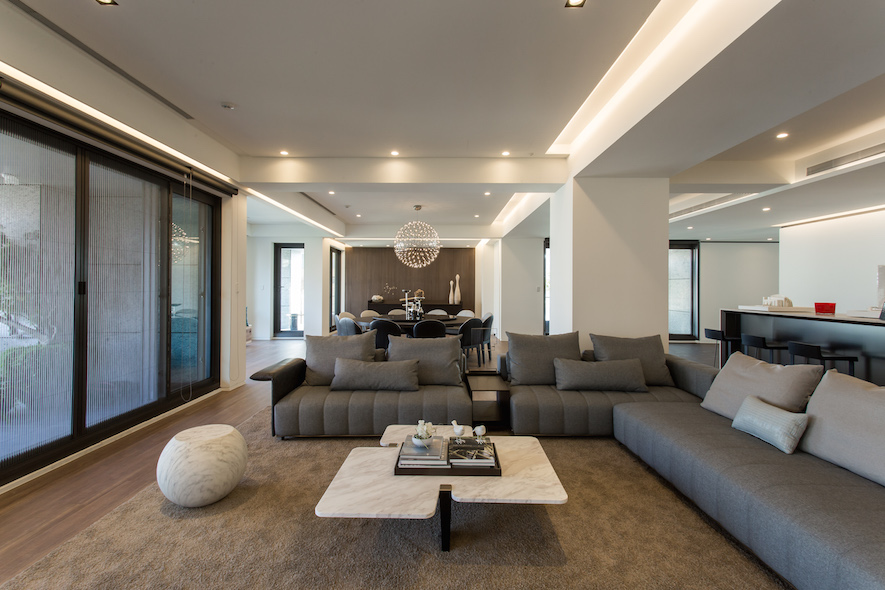 藉由這般渲染而感,在接待中心的空間題旨中---借景,引進自然的素材;簡化線條來催化與時俱進的當代感,空間吸取露窗山水為養分,昇華豪宅在當代架構下的型態,而不受羈絆。