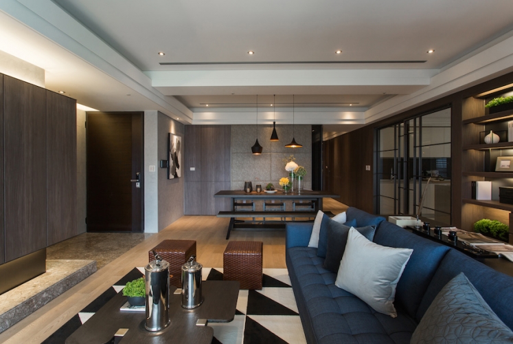 [別居。青山石砌]-本案為實品屋設計案,所以在最初始時,即設定為現代社會流行的簡約風格為大方向,以符合大多數人期待擁有一處能放鬆精神的居住空間。簡約風格即不作任何繁複的裝飾設計,改以材質、線條、色彩與光影變化等元素創造空間質感。但是著重以線條或材質表現設計之空間,常因為過於簡約容易給予人冷漠疏離的感覺。若是著重色彩或材質對比搭配的簡約設計,又容易給予人紛雜的印象。對我們來說,設計沒有絕對值,反而是一個持續不斷探索嘗試的過程,所以我們希望能試著創造出一種不同的、清新自然與洗鍊的空間氛圍。