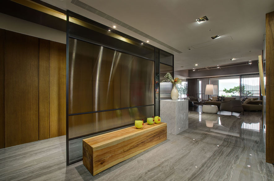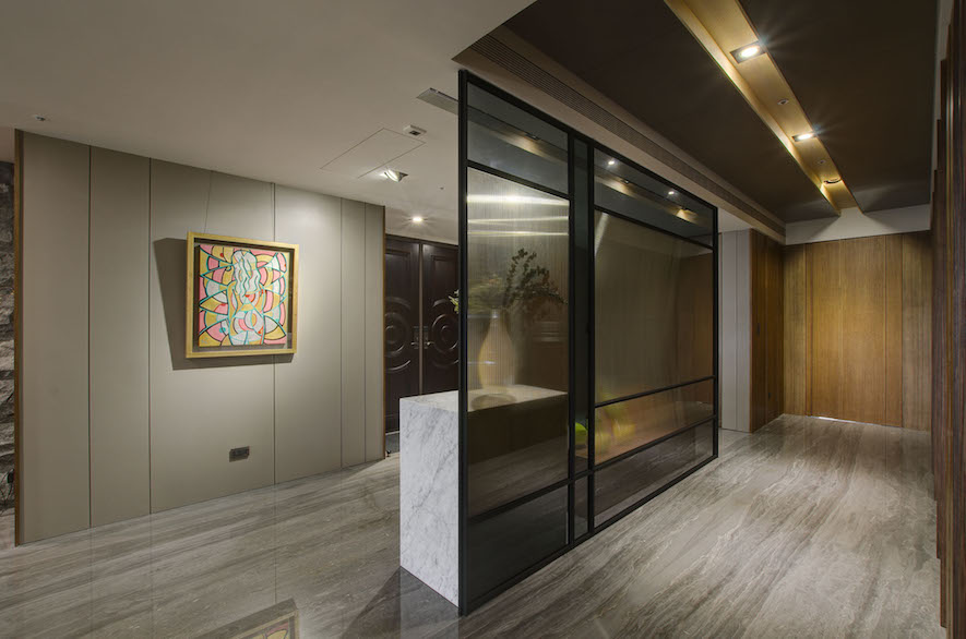 鐵件、大理石、手刮實木地板、精雕玻璃、金屬花窗