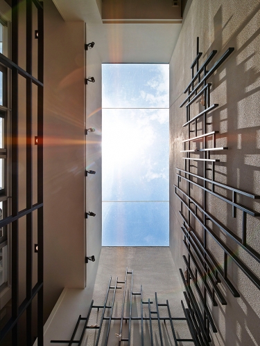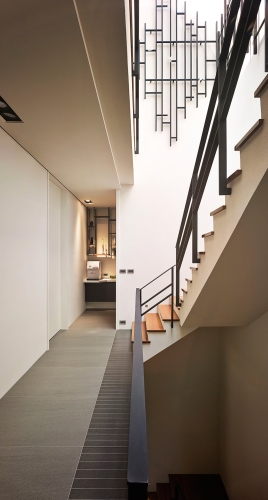 而垂直的服務動線-樓梯,除了是展現建築與光的場域外,