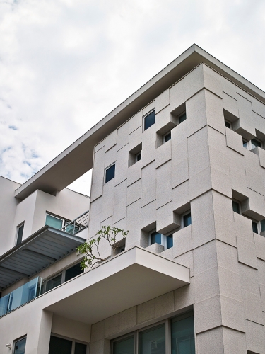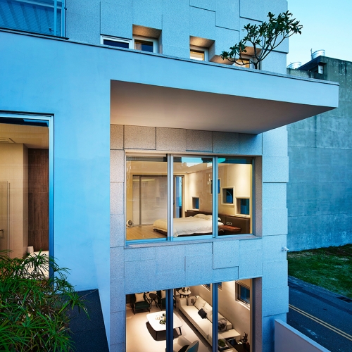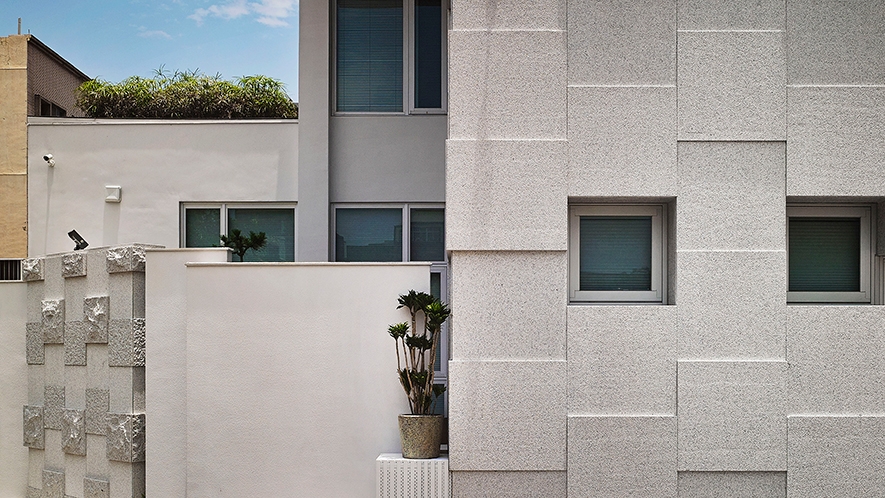 而窗戶的開口成了這棟建築的音符,將白色的花崗石尺寸調整同於窗戶尺寸,