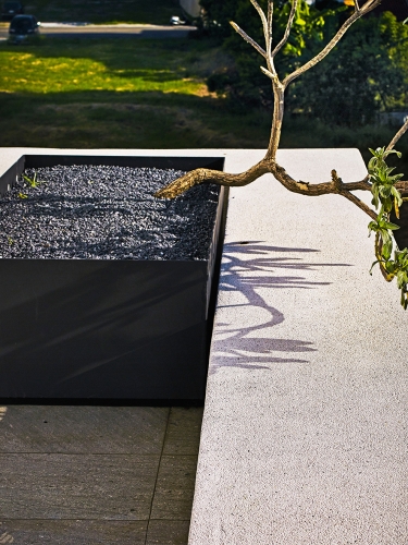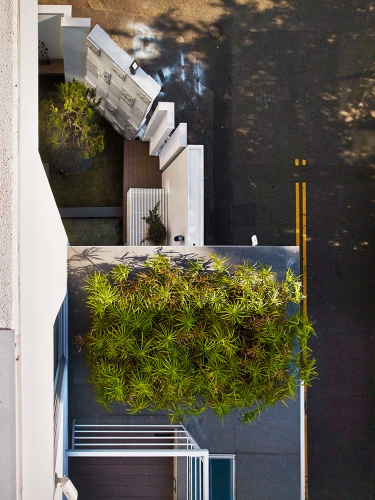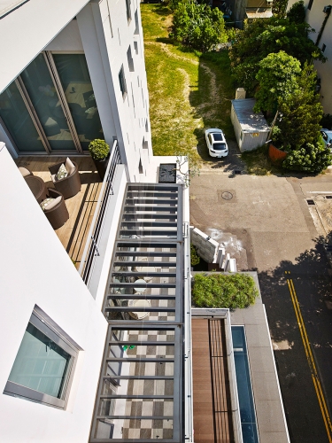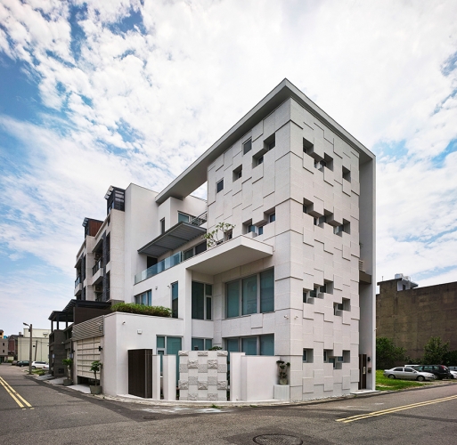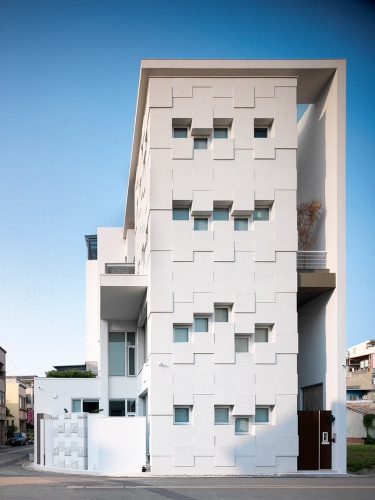 在配置上,將生活機能垂直整合於基地東側,使西側的建築外觀有條件可以呈現建築的層次。