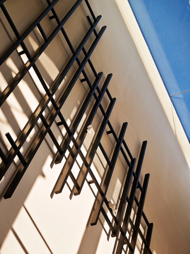 一片一片不同的厚度吊掛於外牆結構,白天安靜地佇立著;