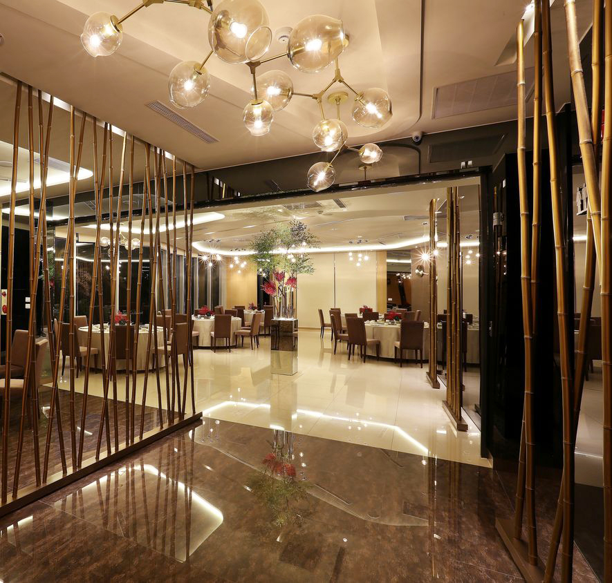 喜食養身,貴在有心,氣勢自然,願景入軒。取五行養生定性定調,將原有大眾熟知金木水火土相生相剋,既有刻板印象重新定位。黃銅取代金,竹林取代木,裝置燈具取代水與火,山石取代土,觸動五感主題空間,除了頂級的食材、精緻的手藝,原創空間鋪陳才能顯現經營者不凡品味 。