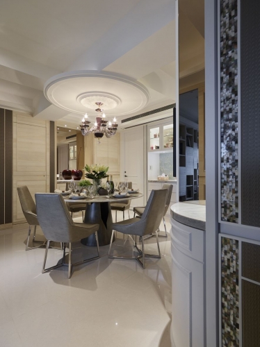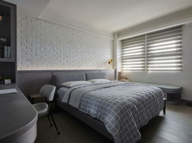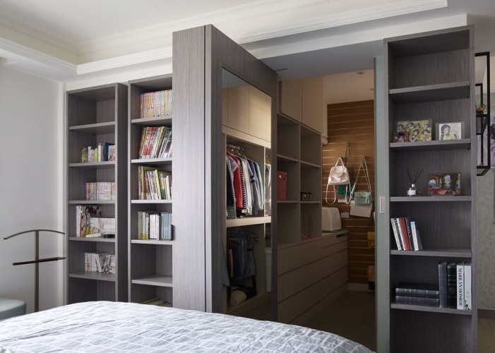儘管本案為新成屋,不過現有格局並不符合屋主一家人的需求,重新調整格局後,除了寬敞大器的客、餐廳,三間臥室也改為機能更完善的兩大房加書房形式,同時兩間主次臥還擁有專屬的更衣間、衛浴,與日常生活關係緊密的收納設計尤其讓人驚喜!透過屋子裡多處隔牆互補退縮的技巧,不僅爭取到豐富收納與流暢動線,也順勢消除了類似長廊、轉角等難用的畸零空間。