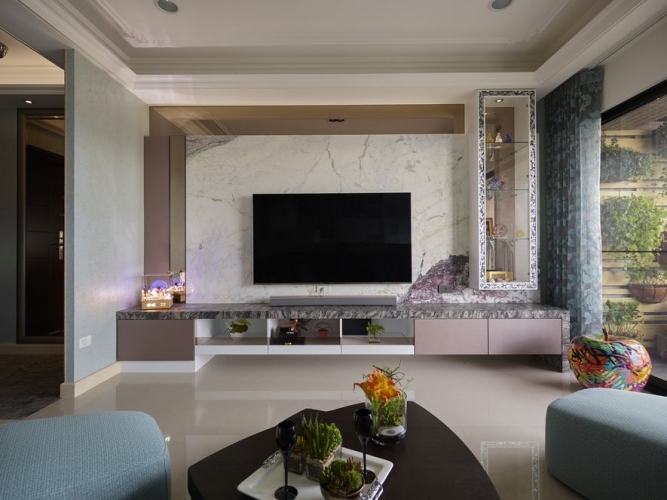 主要建材/ 梧桐木皮染白、特殊石材、皮革、貝殼板、壁紙、超耐磨地板