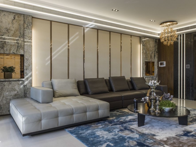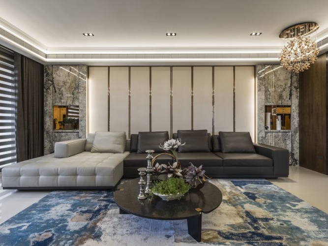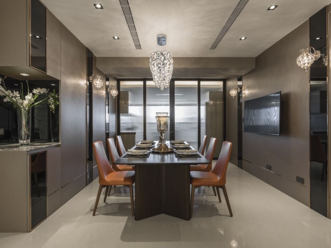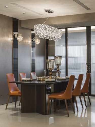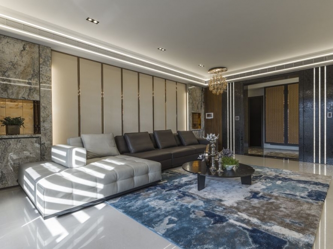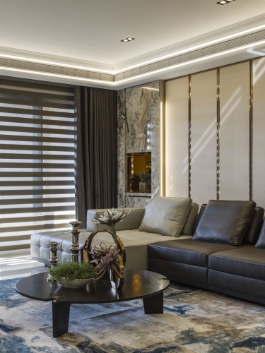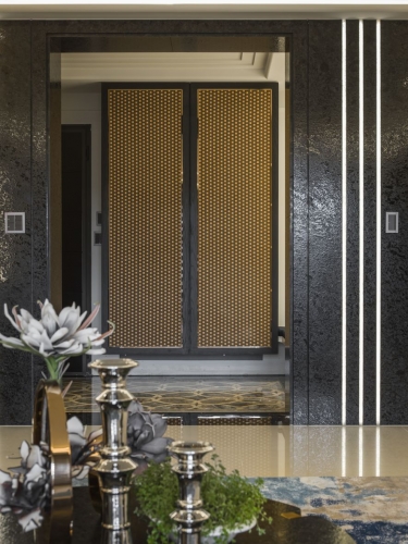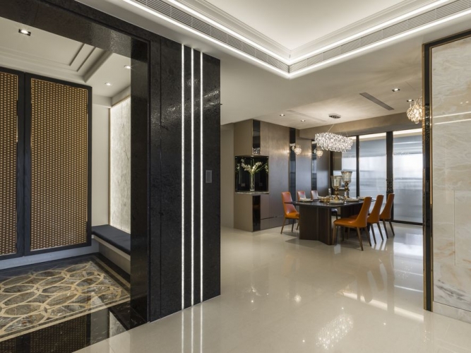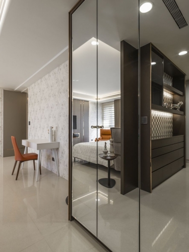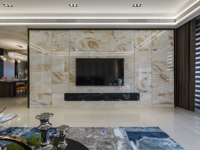 不鏽鋼鍍鈦玫瑰金飾條、木皮、透光石、編織皮革、黑鏡、條紋波浪強化膠合茶色玻璃、西班牙進口壁布、