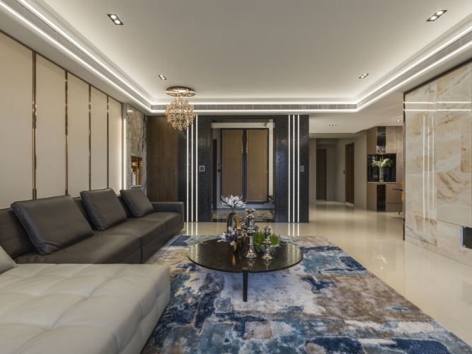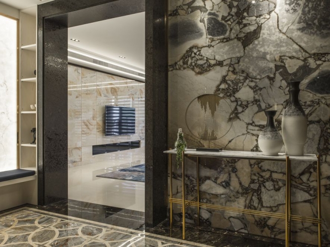 主要建材/ 水刀CNC地坪法國灰大理石圖騰拼花、莫內印象、葡萄牙奧羅拉、咖啡絨皮革面大理石、國畫石、