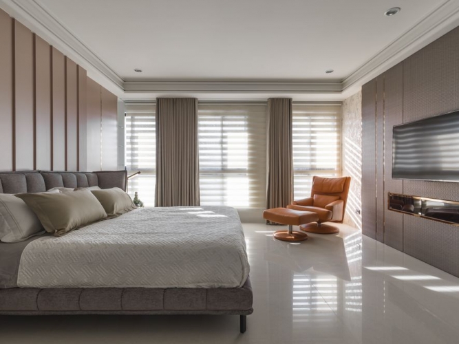 空間格局/ 4房2廳 / 玄關、客廳、餐廳、廚房、主臥室、次臥室、男孩房、客房、儲藏室x2、前觀景陽台、後工作陽台、衛浴x3