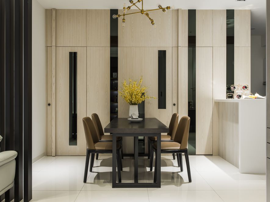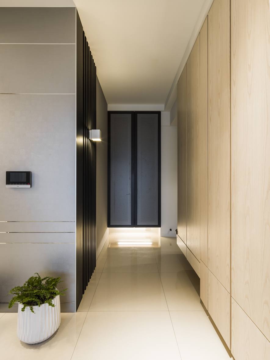 空間中的條紋,搭配天然木皮,