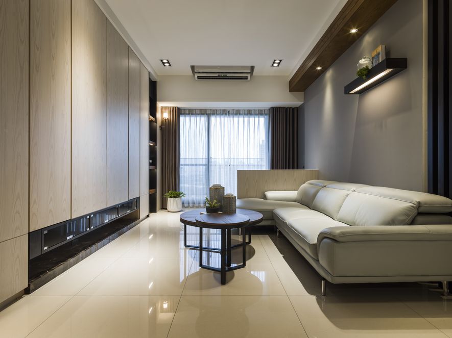 隱藏在客廳電視主牆中的收納櫃,