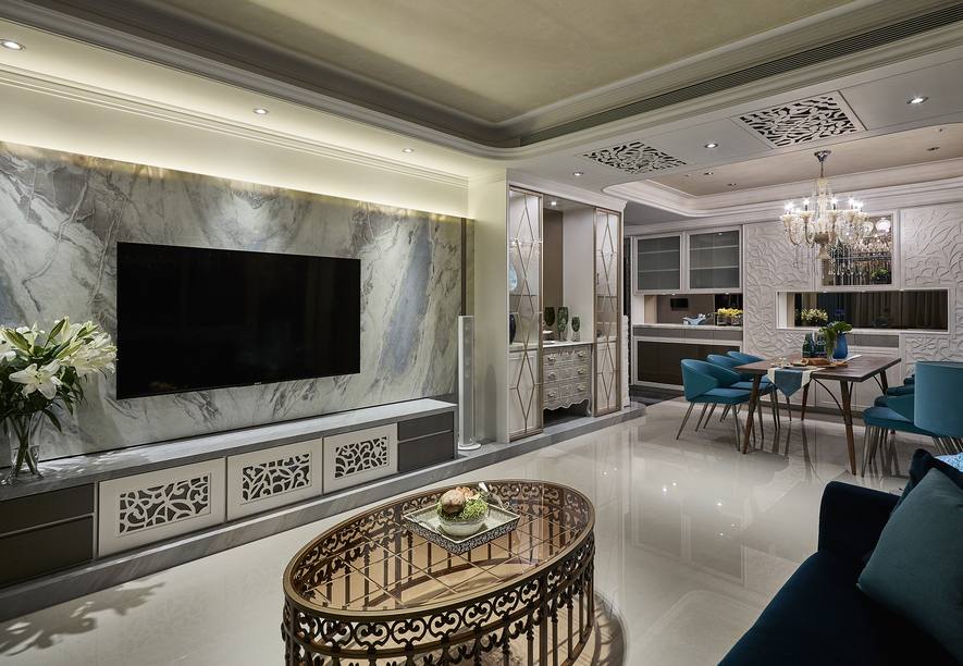 主要建材/ 皮革、石材、貝殼版、壁紙、木皮、白色烤漆 、鑲嵌玻璃、雕花版、茶鏡