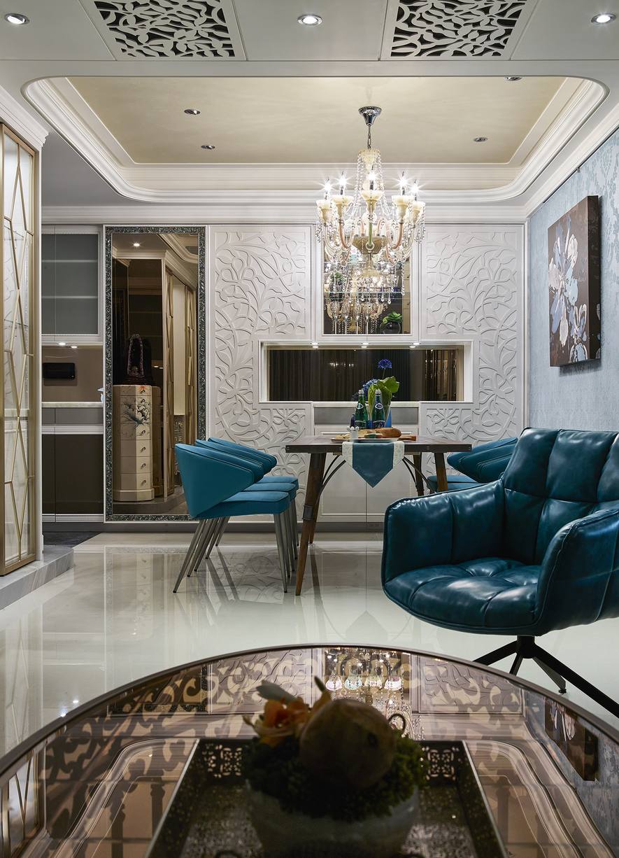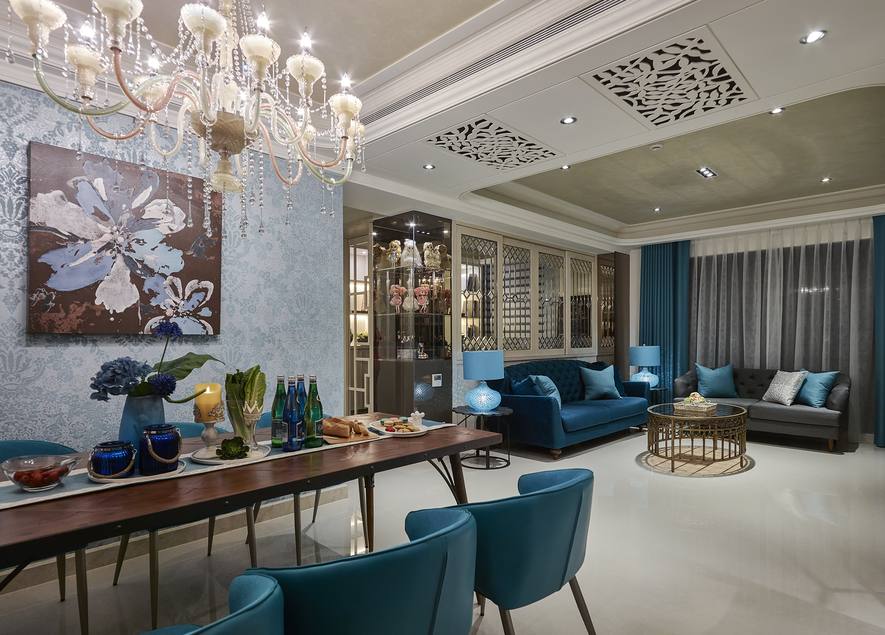 宛如參與一場美的盛宴,在細膩打造的優雅氛圍中揭開序幕——以精緻秀麗的「宮殿風」鋪述場域質感,藉由鮮明且獨特的色調,揮灑絢麗空間樣貌;替作為自家、三代同堂的新房,刻劃極致品味,讓人能更自在優雅地沉浸在空間之中。