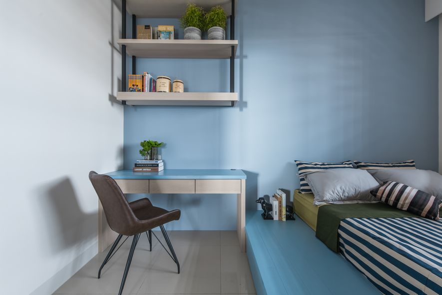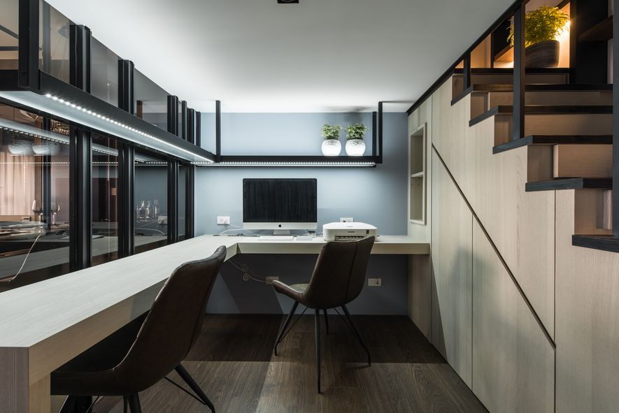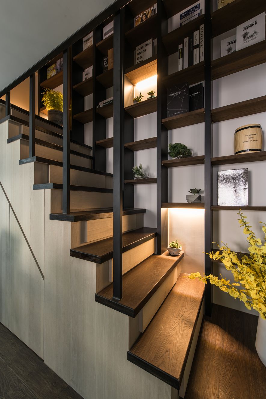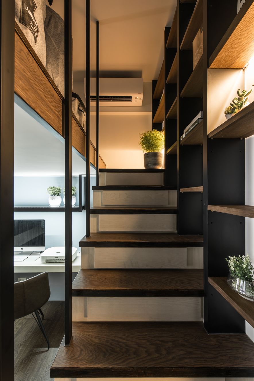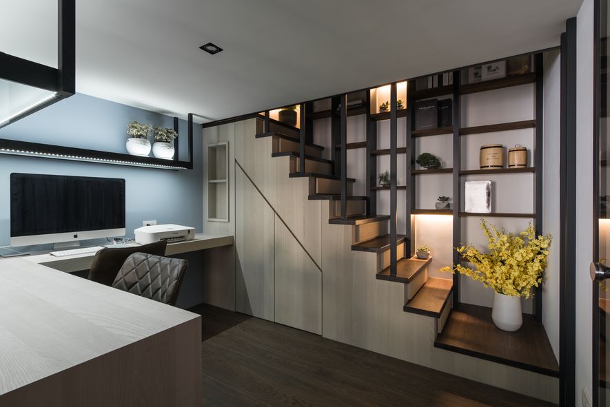 樓梯邊滿滿的層架讓收納的地方更多了以外,