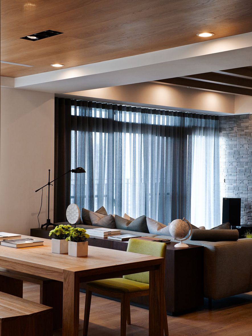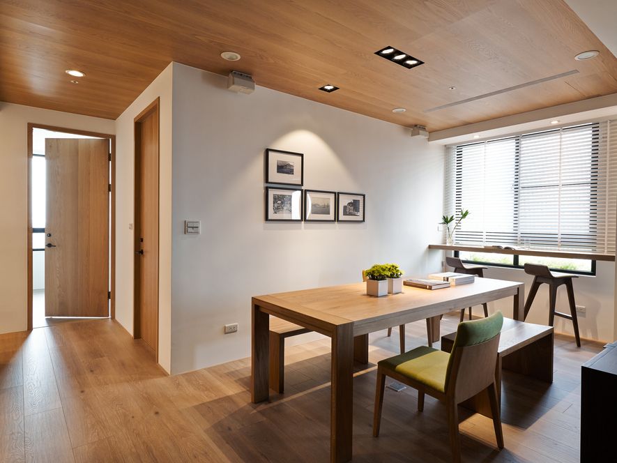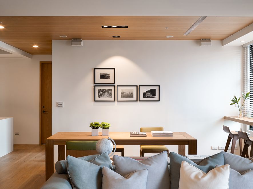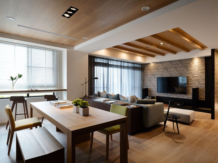 最美好宅!隨著線條的平行、直列、垂直交會,讓整體的表現純粹而單一,木質紋天花板的表現,超乎你的想像!除了達到遮樑目的,更使整間住宅充滿北歐風運用實木的溫潤和線條搭配讓空間更加活躍,紋理之中隱藏著天然、美好的語彙,讓人置身其中感受到簡約的生活型態,一方天地之中感受生活的美好另外,設計師運用石件屏隔在玄關,解決常見的穿堂煞問題,並延伸石件到電視牆,創造律動感外,視覺效果上也放大了空間感。
