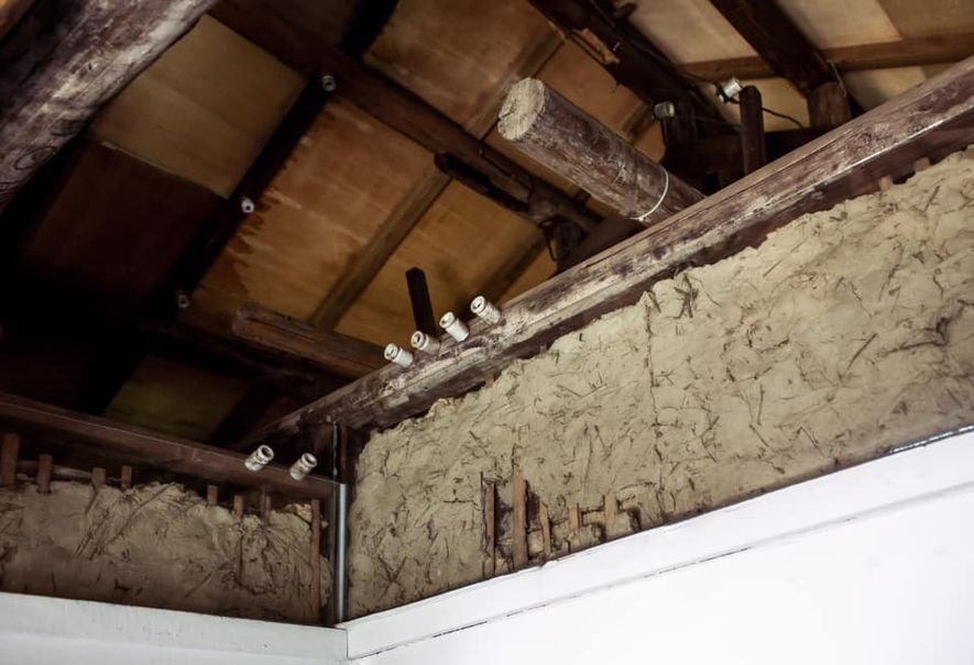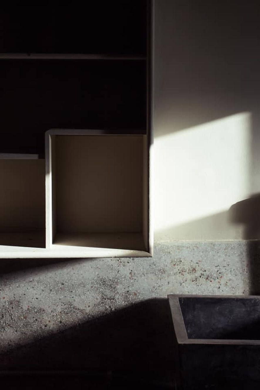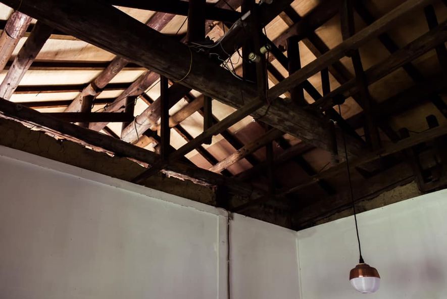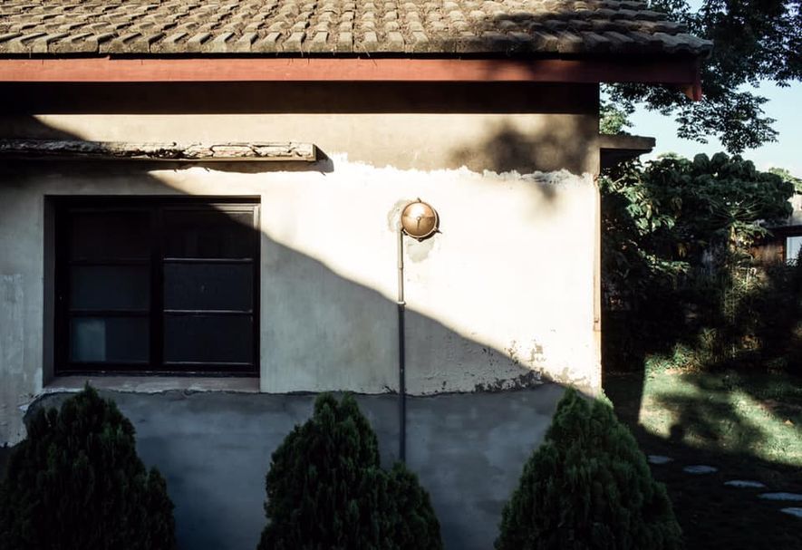 本案為修復1947年台灣第一個眷村——黃埔新村,純日式的屋舍樣式,有特殊的編竹夾泥牆天花橫梁結構,檜木柱體,木作隔門與木地板,泥灰塗牆,洗石子,紅磚牆圍塑起的庭院,戶戶比鄰而居,空間微小而溫馨。面對這間超過70年半傾毀的屋舍,我們盡可能保留仍可使用的屋瓦牆桓,其餘則找尋接近原件的一磚一瓦一木復舊,讓時空返回自然質樸的年代。