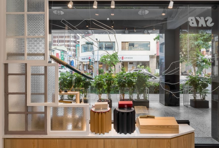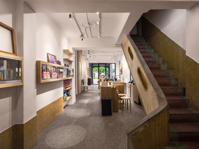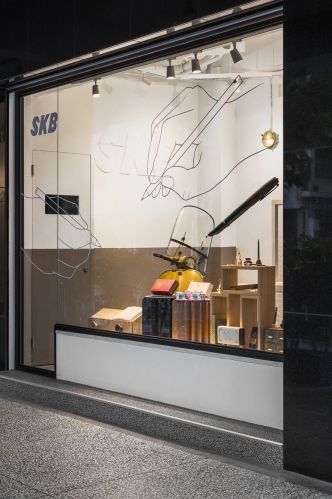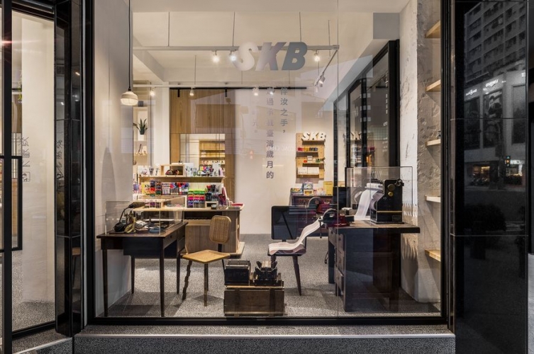 本案為改建1951年至今的台灣老字號文具店,大部份維持建築原尺度,僅部分更動室內牆桓作為多處展區,並修復舊大樓的外觀與騎樓、改善入門動線與門框形制。以極簡台式設計風格定調,並以“書寫文化”為精神,統合大小展區,大量的白色、灰色與淺木色等樸素的材料質感砌築天地壁,讓場域主體能被清楚呈現:古董製筆機器、工具、有歷史的鋼筆、原字筆的流年歲月,分置在臨窗處、中央展區與歷史展示專區,讓商品在具文化脈絡的空間氛圍裡,易於被大眾接觸與擁有。大量沿用台灣在地元素,如:老式窗花、玻璃磚、抿石子等等,重新組構、運用在櫃體、櫥窗、地面、角落,成為新舊空間交融裡的記憶符號。