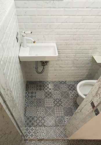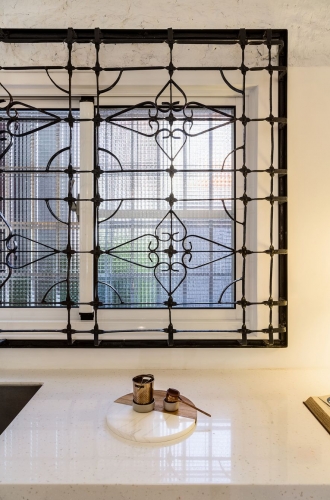 主要建材/ 白栓木實木鋼刷木皮、耐燃美耐皿、石材、烤漆鐵件薄板、樺木夾板、鐵刀實木、西班牙壁磚、老式花窗、花式玻璃磚、抿石子地面