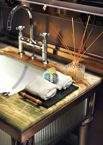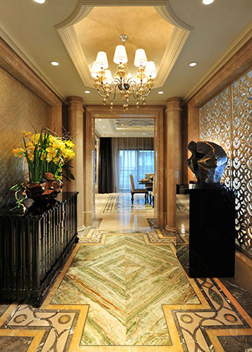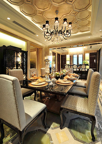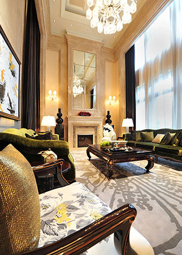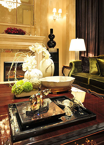濃重色彩的大膽運用,傳達出神秘的東方情調。利用色彩的襯托與沖突,如碧綠與金黃,黑色與大紅,增加感官沖擊力,而軟裝品的精細質感,則傳達了現代都市的時尚氣息。