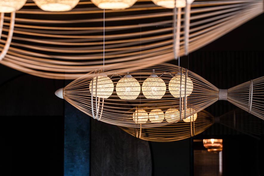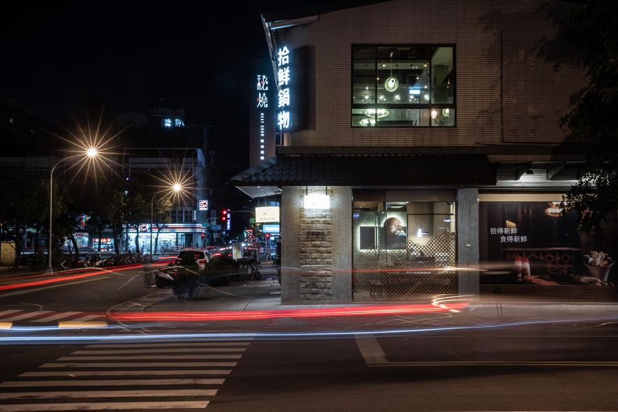 本案為座落鬧區轉角的鍋物店,提取古典元素,化用現代手法,以新舊融合的姿態煥發光彩。結合在地瓦窯品牌,將瓦之意象寓意為「鍋物送暖」,樓棟彷彿化為一口窯爐,緩緩吹送暾煦和風。新鮮食材佐以自然材質,呼應「拾得新鮮」的美好意念,轉化既定中的餐食氛圍。