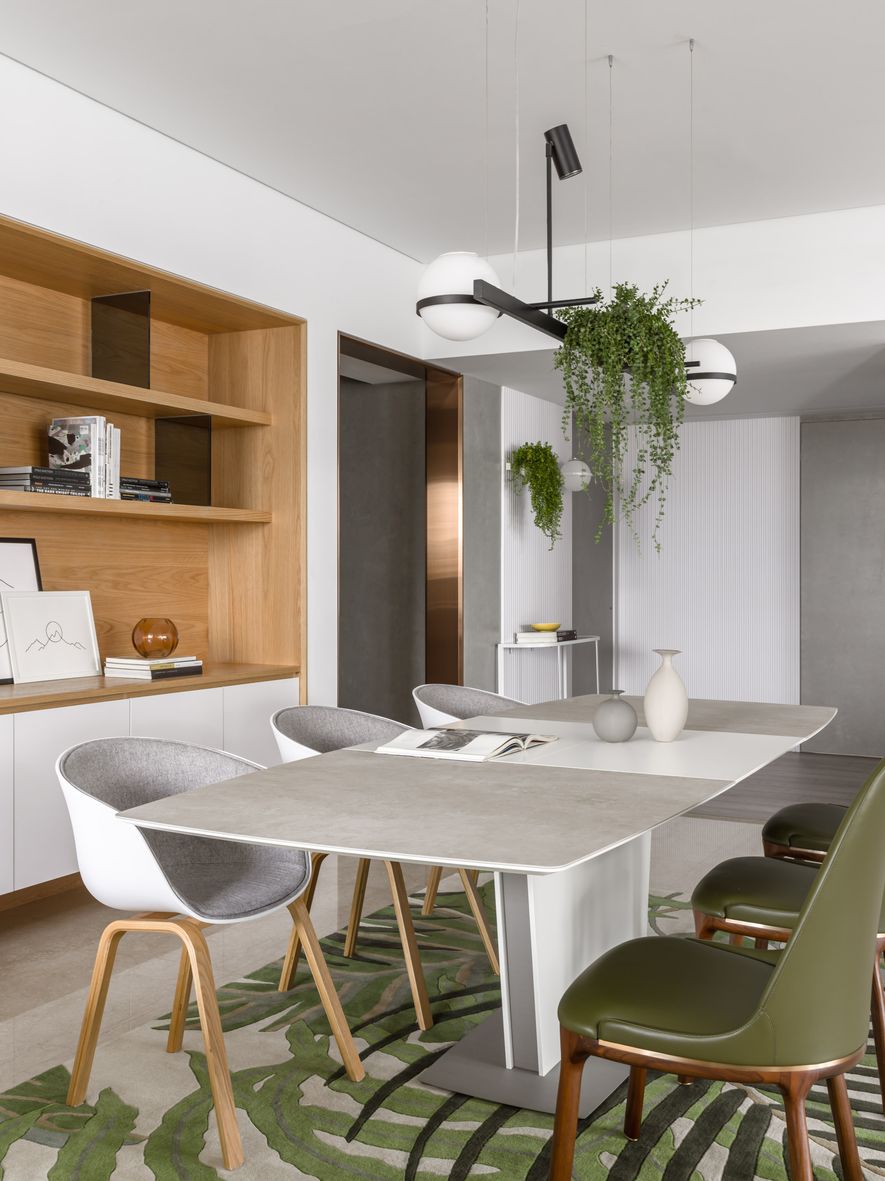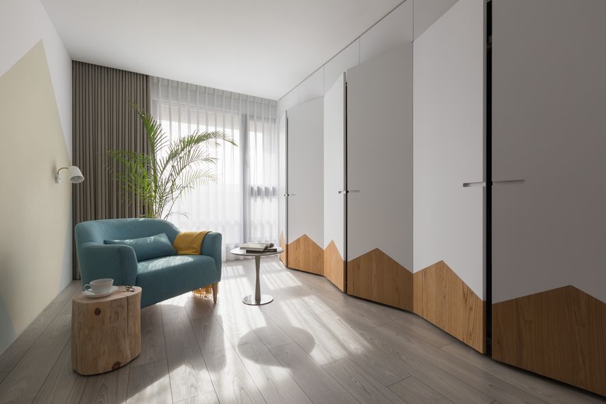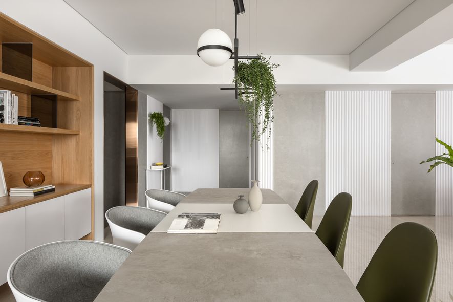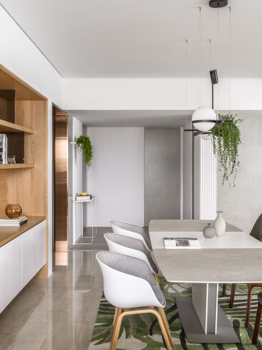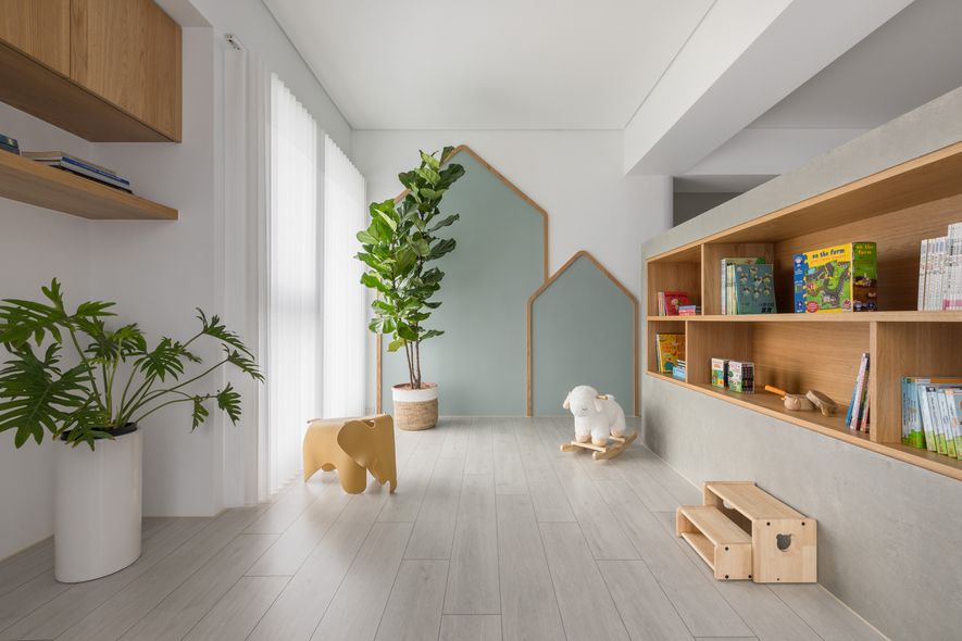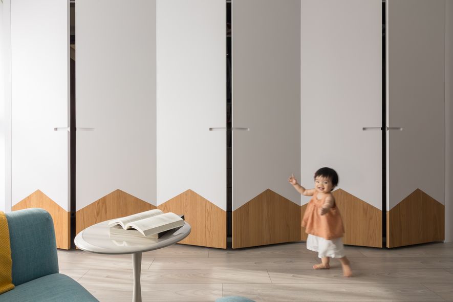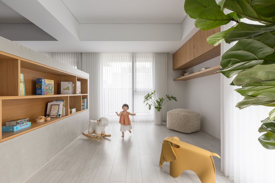 在如此成員組合下,業主首要期望居住環境必須友善健康,低甲醛、綠建材便成為設計師首選;其次,身為與時間賽跑的急診室醫生,也希望回到家是能快速釋放壓力的,設計師因而選擇業主偏好的北歐風格為主調,運用經典元素,如白淨色系、木質物件等空間表現,規劃出這座清爽明亮,同時充滿療癒能量的五口之家。