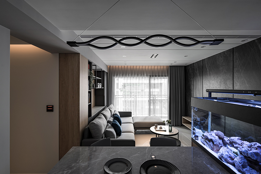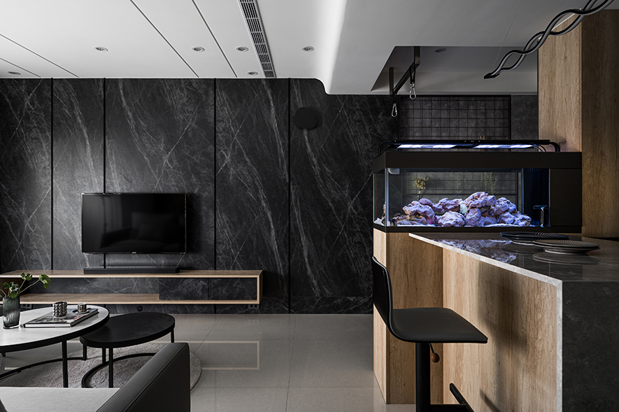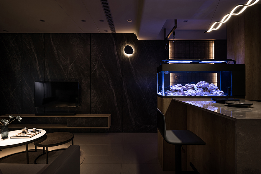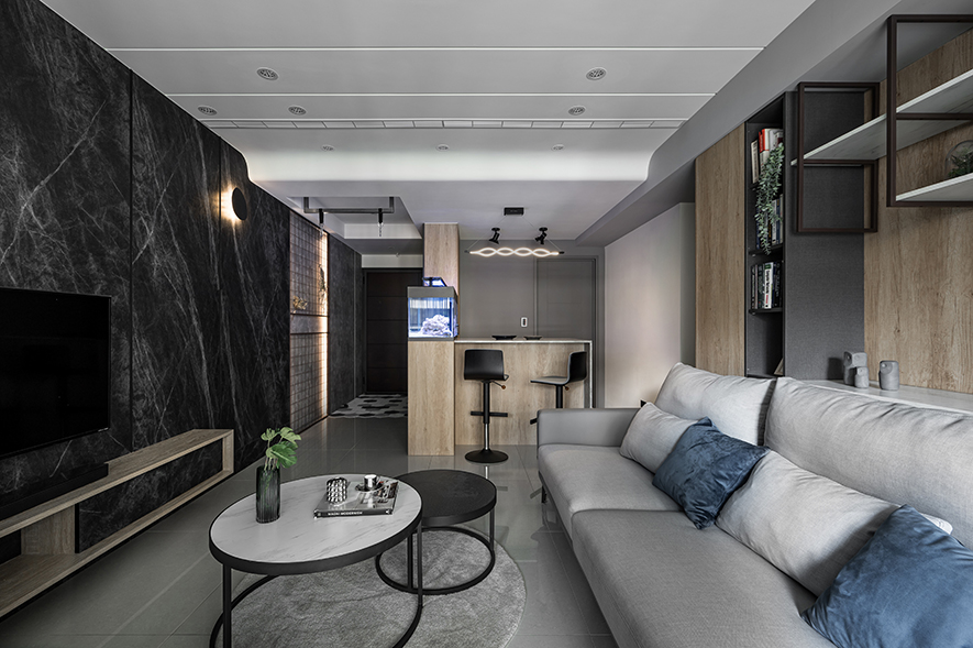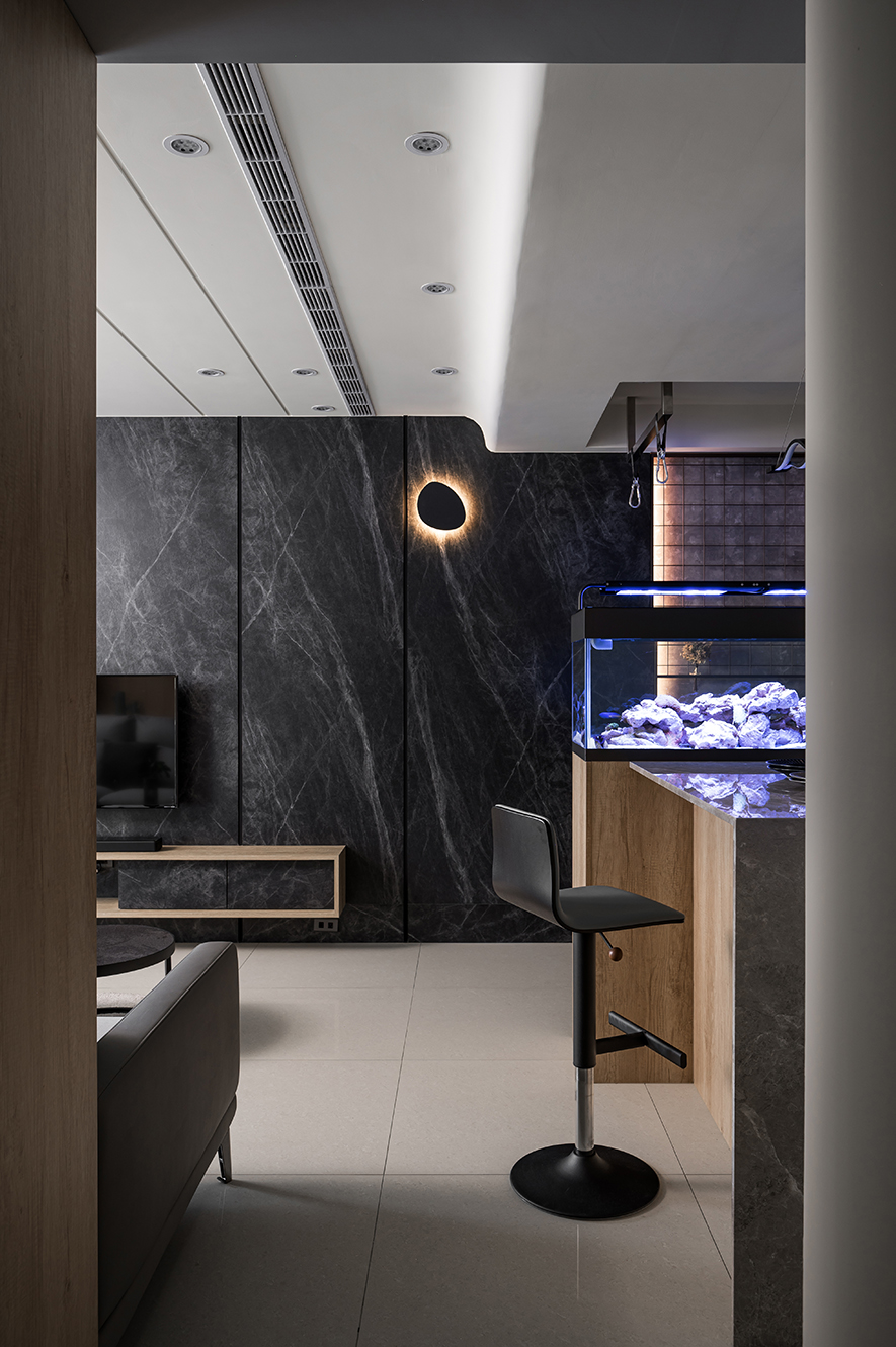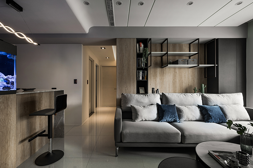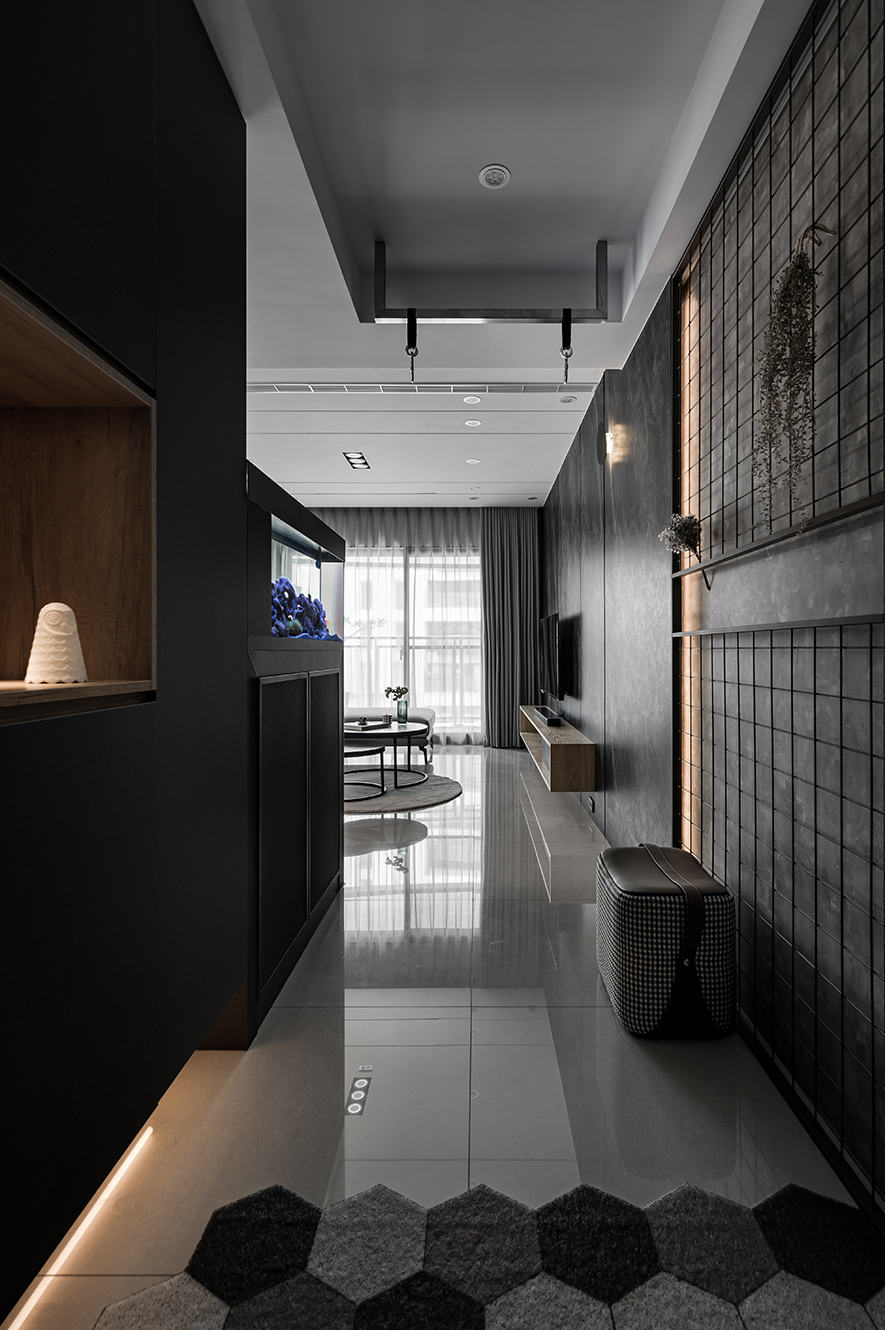 內斂的墨色,溫和的灰調,清爽的木質,予人多變感受的深淺色彩,渲染一片和諧寧謐的景色,於柔和燈光的襯托下,靜靜散發溫馨暖意,一座品味別具的獨居雅宅,就此誕生。