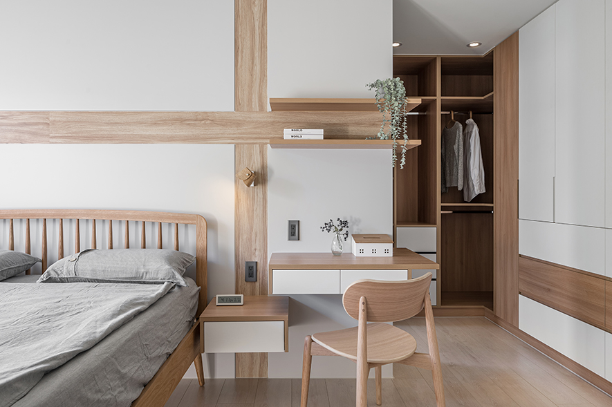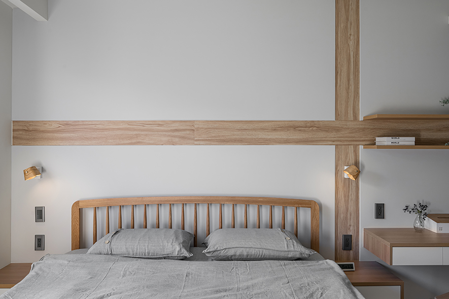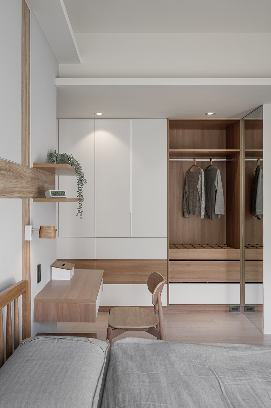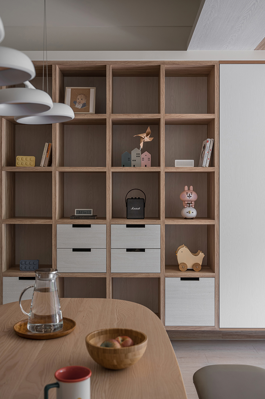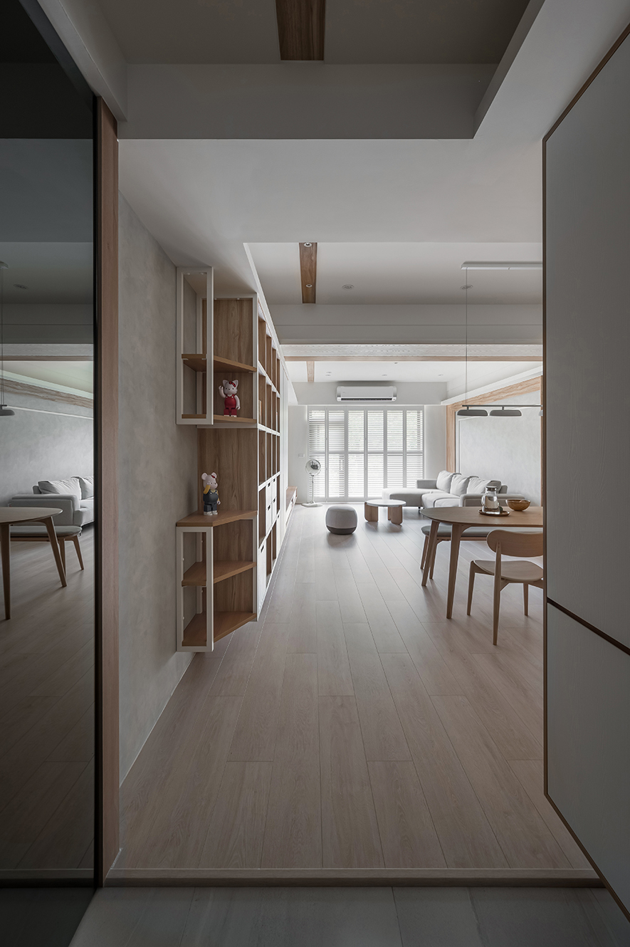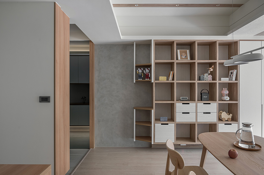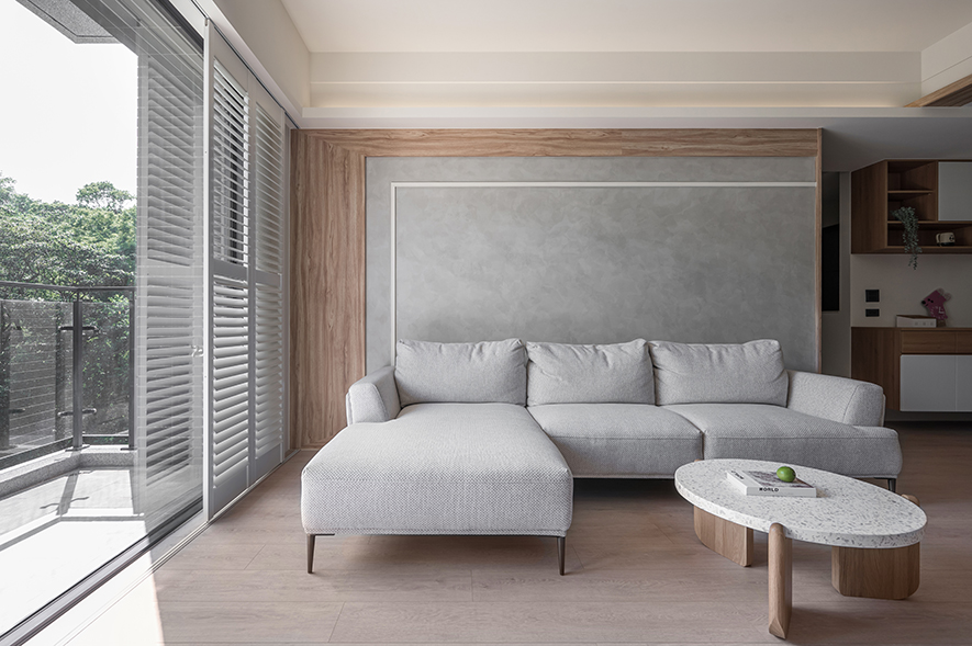 微風輕拂,晨曦溫柔照映,清光灑落一室,清新舒坦的樣貌,形成家的純粹姿態。優雅潔白,交錯以木紋,淺色調的質地,鋪展出和諧輕鬆的親情敘事,沉浸共伴時光於簡約線條勾勒之中。