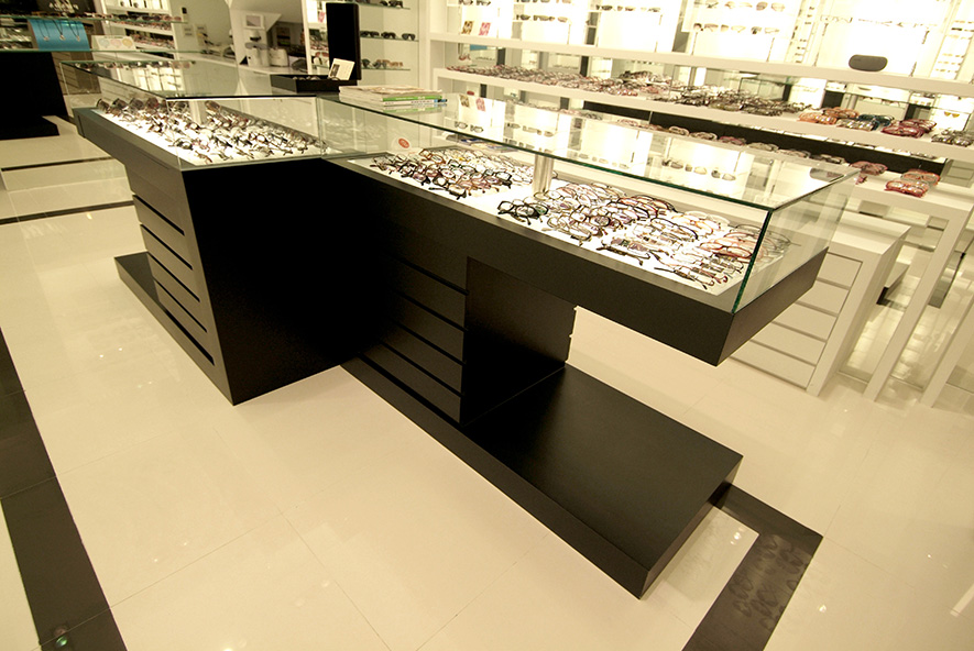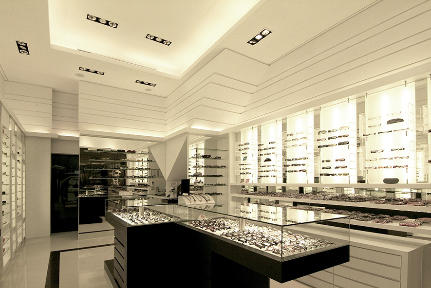 細膩與堅持,是設計師一貫的設計理念,他認為好的設計能呈現時尚與風格的完美結合,同時契合使用者的需求。此案空間以黑白二色定調,利用線條的分割、量體的傾斜與鏡射材質的置入,帶出了雅致而時尚的空間氛圍。除此之外,環繞式動線與中島展示櫃所釋放的視覺空間,與低重心的陳列邊櫃,皆完整的呈現出千百樣式的商品,在簡潔而優雅的質感中,形成一脈繁而不雜的視覺感受。