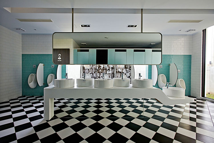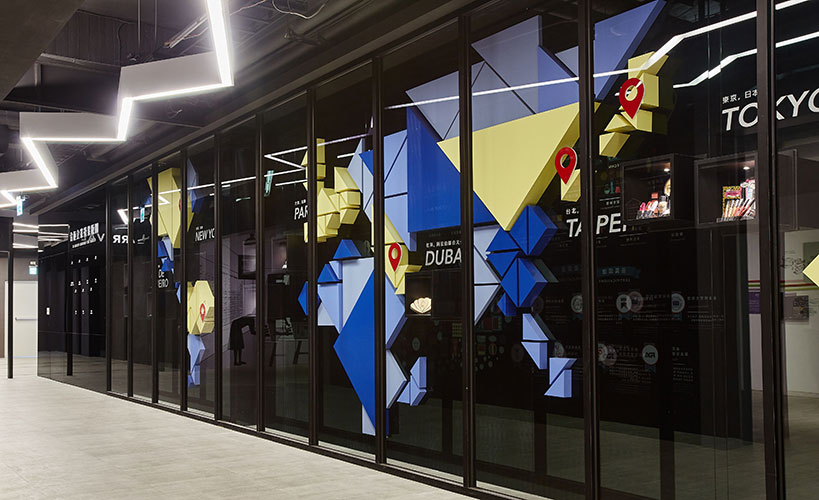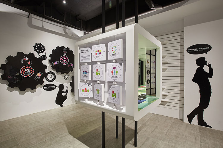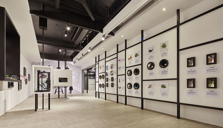 傳遞美妝知識及品牌歷史,設計師跳脫制式博物館的格調,民眾在一片黑白世界中,站立在如鏡框的牆面線條前,看見化妝品帶來的新生活及自己,趣味互動地了解美妝品的知識。